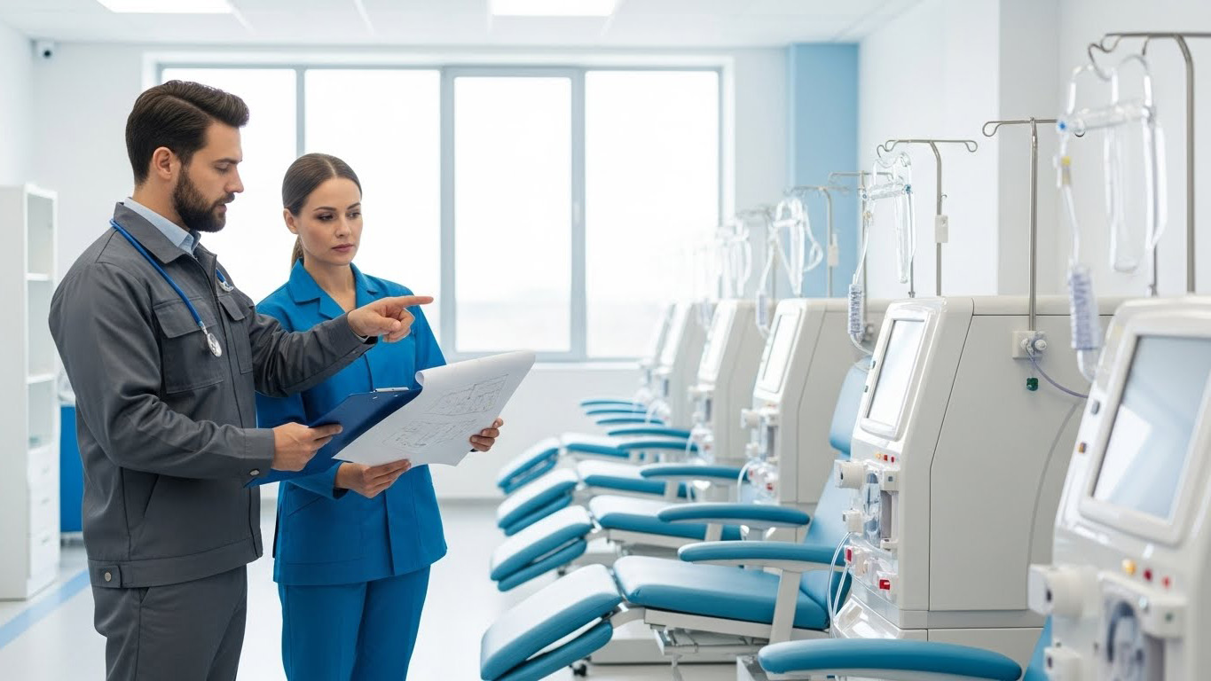 إنشاء مركز غسيل كلى ناجح لا يعتمد فقط على شراء أجهزة من ماركات معروفة؛ بل يبدأ من مرحلة التخطيط الصحيح للمساحات ومسارات حركة المرضى والطاقم، ثم اختيار أنظمة غسيل ومحطات معالجة مياه مناسبة لعدد الجلسات اليومية وطبيعة المرفق الطبي. الاستعانة بفريق استشاري متخصص يختصر الكثير من التجارب والأخطاء، حيث يتم تصميم المركز وفق المعايير العالمية الخاصة بجودة مياه الغسيل، وسلامة التوصيلات، وراحة المرضى والطاقم الطبي. بعد مرحلة التصميم والتجهيز، يأتي دور التدريب العملي للكوادر الطبية والفنية على التشغيل الصحيح للأجهزة والتعامل مع أي إنذارات أو أعطال بسيطة، إلى جانب وضع بروتوكولات تشغيل وصيانة واضحة. بهذه المنظومة المتكاملة من الاستشارات الهندسية، والتجهيز، والتدريب، يتحول المركز الجديد من مشروع على الورق إلى وحدة غسيل كلى جاهزة لتقديم خدمة مستقرة وآمنة من أول يوم تشغيل.